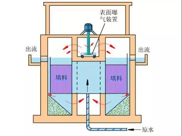 厌氧生物滤池内部填充固体填料,如炉渣、瓷环、塑料等,厌氧微生物部分附着生长在填料上,形成厌氧生物膜,另一部分在填料空隙间处于悬浮状态。