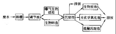 厌氧-好氧生物转盘:该工艺中厌氧、好氧各有污泥分离与回流装置,整个系统的剩余污泥全部回流到厌氧生物转盘。该流程对COD、色度等的去除率均达到70%以上。适当投加微量絮凝剂,测得CODCr、色度的去除率可提高15%~20%。
