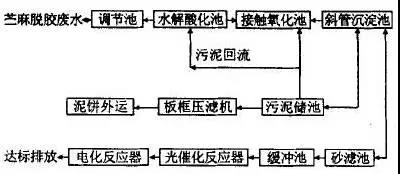 (1)麻脱胶废水处理,其典型流程见下图