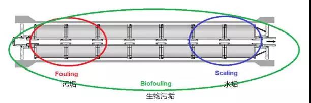 有机污垢主要导致上游侧管道堵塞,而如果下游侧盐含量较高,可能导致盐沉淀,即无机污垢或水垢。生物污垢可以扩散到整个系统,因此可存在于各个点。