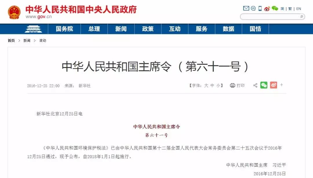 1月1日,我国第一部推进生态文明建设的单行税法 ——《环境保护税法》正式实施,这标志着环保费改税正式完成,同时意味着环保税的开征标志着我国的环保事业和经济发展进入了全新的阶段,生态文明体制建设迈上了新的台阶。