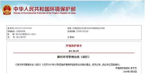 1月17日,环保部印发了《排污许可管理办法(试行)》,标志着我国排污许可制度的第一个部门规章正式出台。