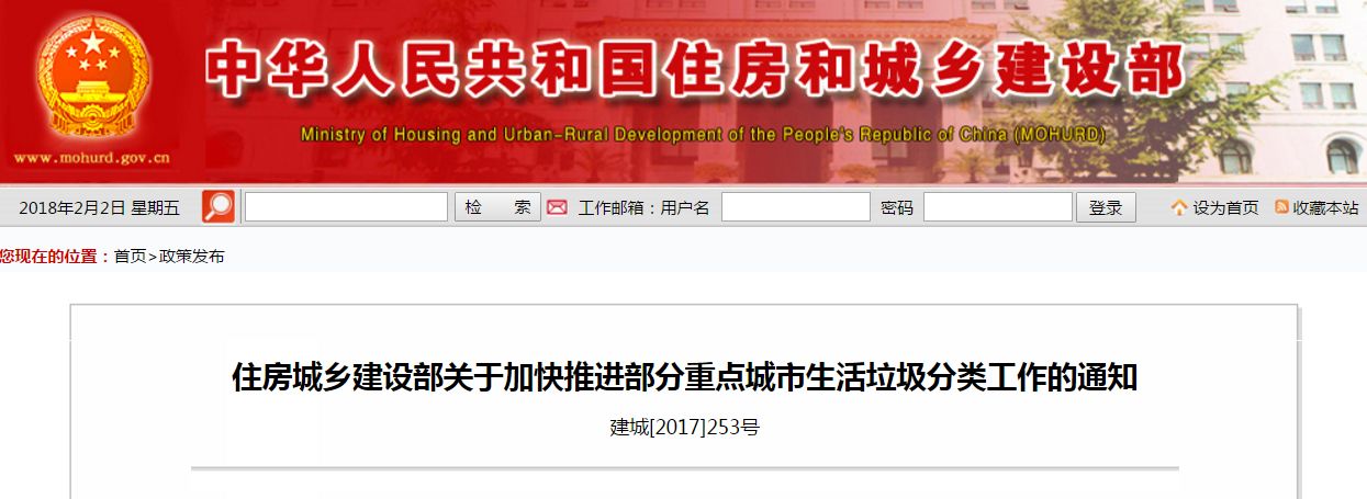 中国住房和城乡建设部1月8日发布的消息称,3月底前,北京、天津、上海等46个重点城市要出台生活垃圾分类管理实施方案或行动计划,明确年度工作目标,细化工作内容,量化工作任务。