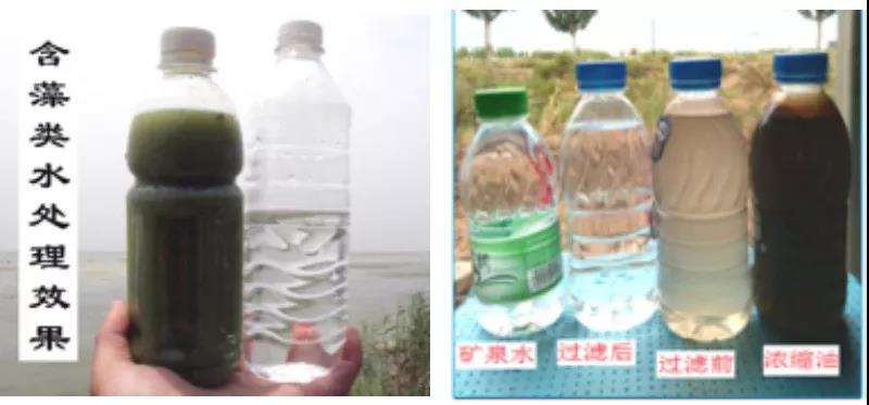 左图是湖泊治理的过滤效果,右图是含油污水的过滤效果