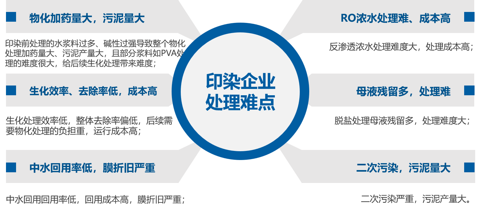 印染废水普遍具有水量大、水质成分复杂、碱性强、COD浓度高、色度高的特点,而且国家对印染行业的排量控制趋严甚至部分省份提出了控盐排放的要求。