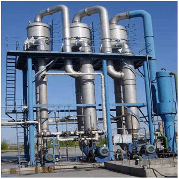 在多效蒸发装置中,由新蒸汽加热第一效产生的蒸汽不进入冷凝器,而是作为第二效的加热介质得以再次利用。这样可以将新蒸汽消耗有效降低约50%。重复利用此原理,可进一步降低新蒸汽能耗。第一效的最高加热温度与最后一效的最低沸点温度形成了总温差,分别于各个效。结果,每效温度随效数增加而减小。所以为达到制定的蒸发速率必须增大加热面积。
